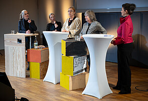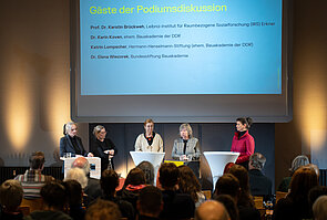Um das Projekt und seine Ergebnisse einer breiteren Öffentlichkeit vorzustellen, organisierte die Bundesstiftung Bauakademie gemeinsam mit dem IRS am 18. November 2025 die Veranstaltung „Forschungsprojekt Bauakademie der DDR – Zeitzeug*innen im Dialog“ im Deutschen Architekturzentrum (DAZ). Im Mittelpunkt standen die Präsentation des Projekts, die historische Bedeutung der Bauakademie sowie die Vorstellung ausgewählter Interviews mit ehemaligen Mitarbeitenden. Die Veranstaltung bot Raum für Diskussionen über die Rolle der Bauakademie im DDR-Bauwesen, ihre Nachgeschichte in der Transformationszeit sowie die aktuellen Herausforderungen im Planen und Bauen und damit verbunden die Rolle der Bundesstiftung Bauakademie.